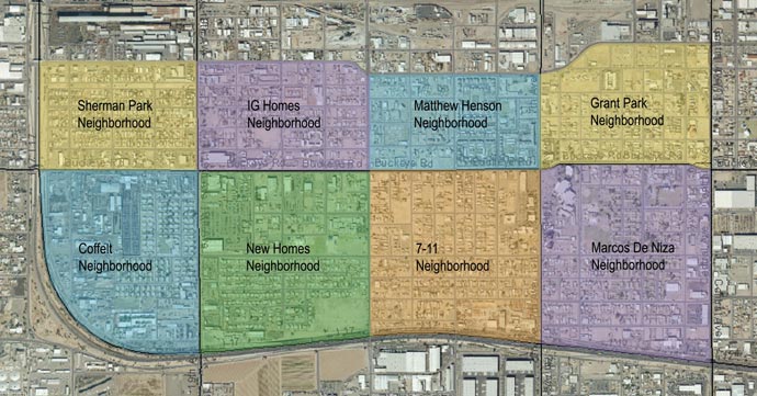 Click on a neighborhood name on the map above to view individual neighborhood information (pdf format) ![]() Click here to view "Central City South (CCS) At a Glance" full report CENTRAL CITY SOUTH CONTEXT Central City South is an area approximately 2 square miles, southwest of Downtown Phoenix, bounded by the Pacific Railroad tracks on the north, the Maricopa Freeway (I-17) to the west and south and Central Avenue on the east. This community is very diverse it is part of the City of Phoenix Enterprise Community/Enterprise Zone and is composed of eight different neighborhoods: Grant Park, Marcos de Niza, Seventh-Eleventh, Matthew Henson, New Homes, IG. Holmes, Sherman Park and Coffelt; with nine different neighborhood associations. This area which has historically been a low income, minority community continues that trend in 2009. In the last census done in 2005 Central City South had approximately 10,157 residents: Hispanic - 7,741 residents (76.2%) Non-hispanic White - 426 residents (4.2%) Non-hispanic Black - 1,658 residents (16.3%) American Indian/Alaskan Native - 138 residents (1.4%) Asian - 103 residents (1.0%) Native Hawaiian/Pacific Islanders - 3 residents (0.0%) Two or more Races/Other - 89 residents (0.9%) Source: 2000 U.S. Census Summary File (City of Phoenix Planning Department) |